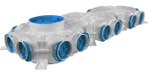Manifold with 200mm inlet and outlet at the bottom, Also 16x75mm outlets